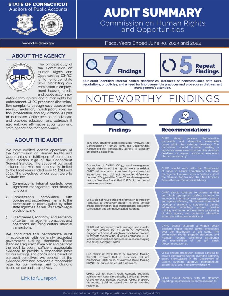 | 20260408 | Human Rights and Opportunities, Commission on | 04/08/2026 | Audit | 2023,2024 | |